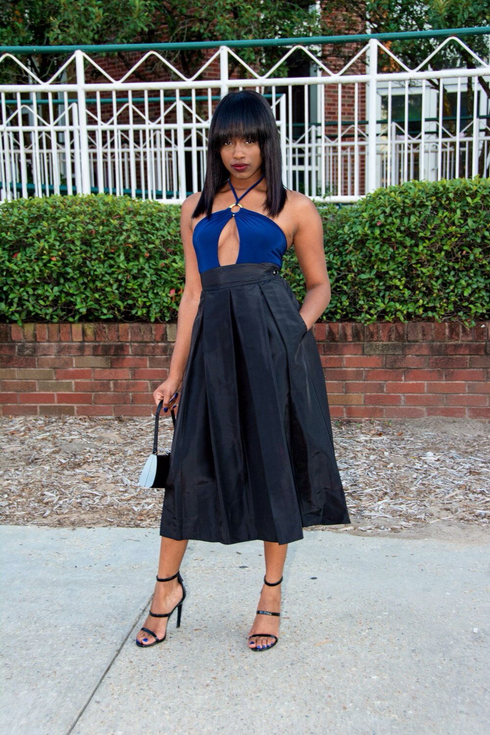 I have a new favorite thrifted item! This satin, pleated skirt from Meta Exchange in Baton Rouge was only 8 bucks. I styled it with a bodysuit from Missguided, Steve Madden sandal heels, and a thrifted, satin handbag.